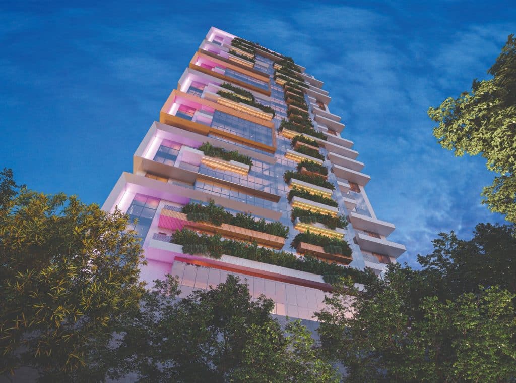 Um dos destaques do projeto do Torre Noir é sua fachada verde, concebida para envolver a torre com vegetação natural. Isso cria a sensação de continuidade com as árvores da praça e o cenário em torno. A proposta dialoga com tendências internacionais de urbanismo sustentável. Nestas, jardins verticais assumem papel estético e ambiental, ajudando a amenizar ilhas de calor, melhorar a qualidade do ar e proporcionar maior conforto térmico aos ambientes internos.